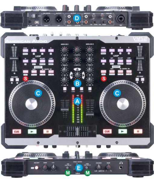 M. MIDILOGS. Set those switchers to USB position in order the audio of the corresponding VirtualDJ deck to be routed from the USB audio interface. Set to Analogue position to allow for an external media source (such as CD/MP3 player) to be routed to the corresponding mixer channel.