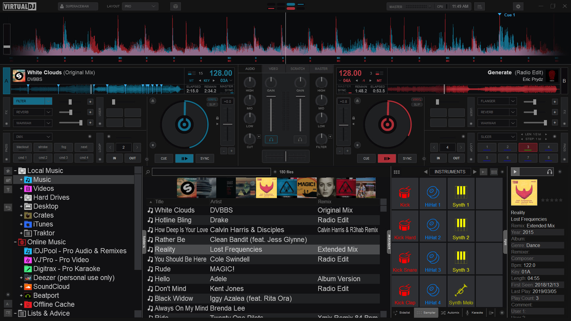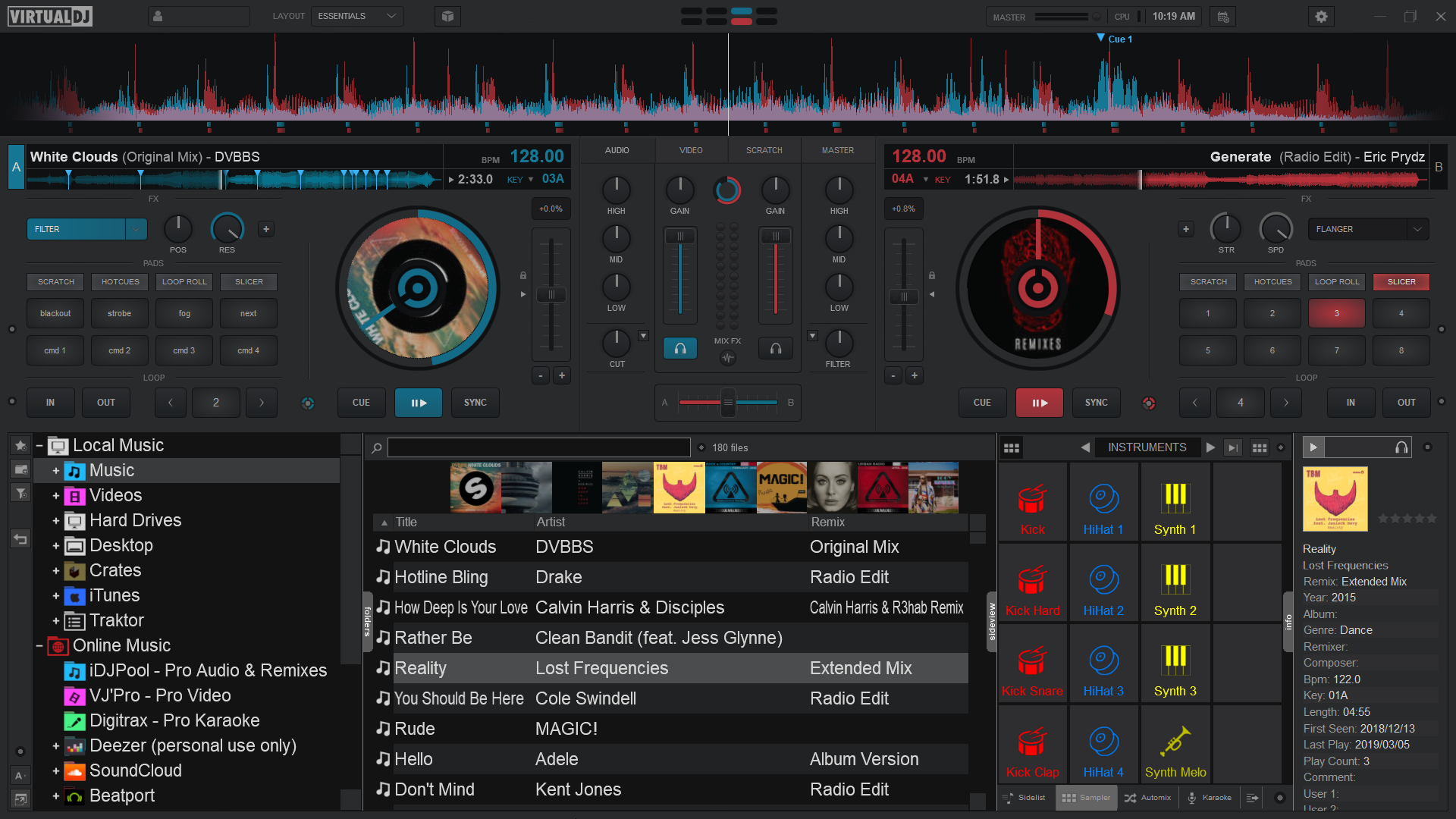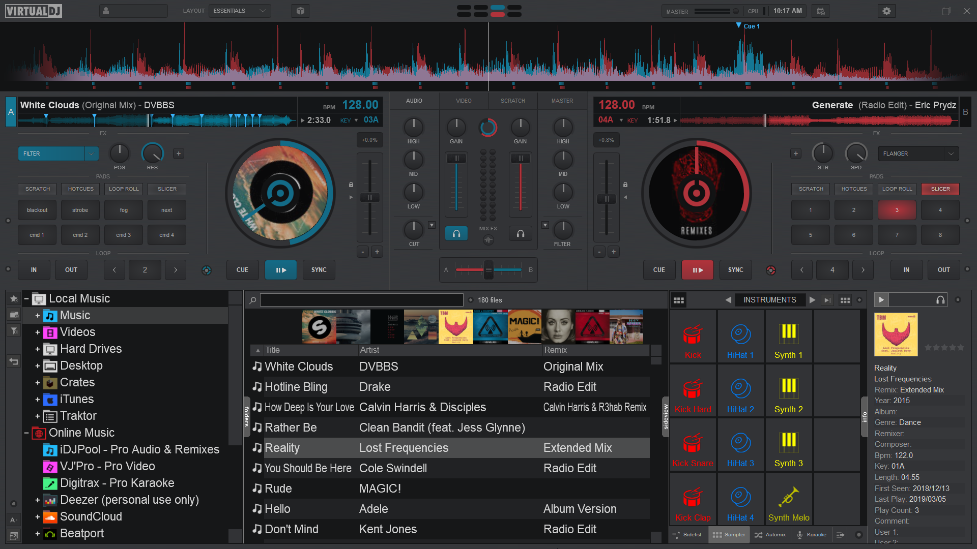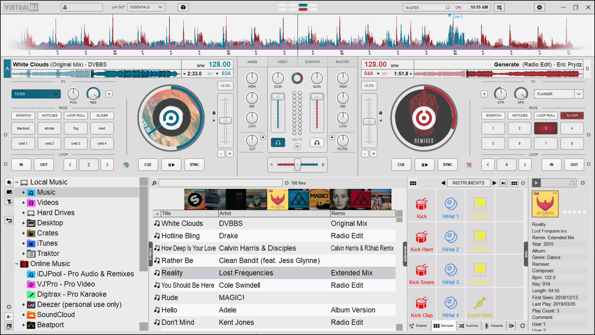 Rhythm Enhanced Waveform w/Grid Lines and Bar Counter Deck LayoutChanges the size and position of the decks. 3 Options are available; Full, Compact (default) and Small. When the Full option is selected, other characteristics of the layout can be changed such as the jogwheels (See Pro Layout).