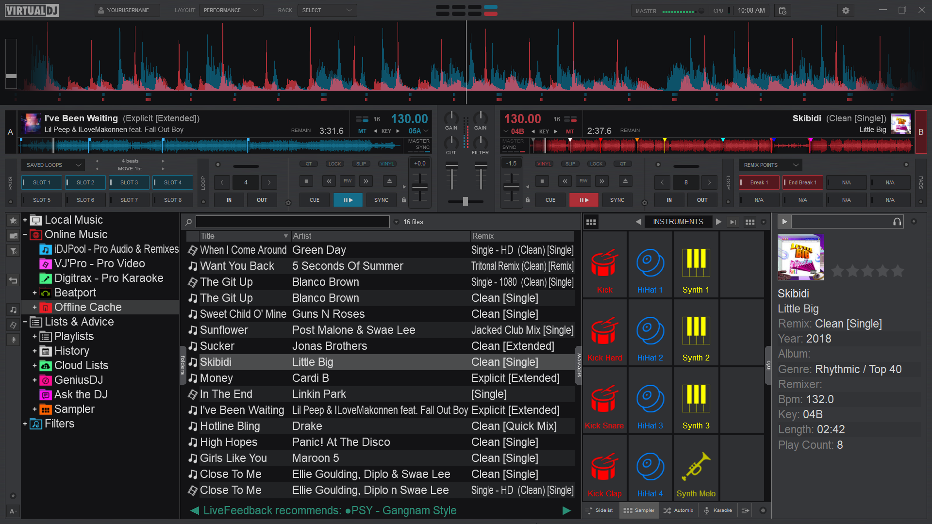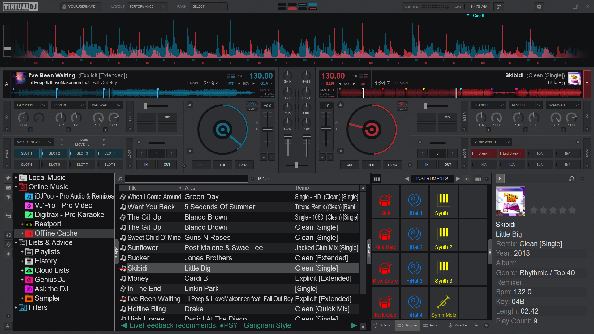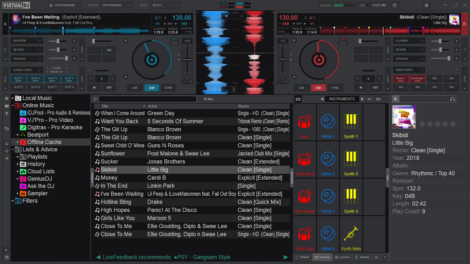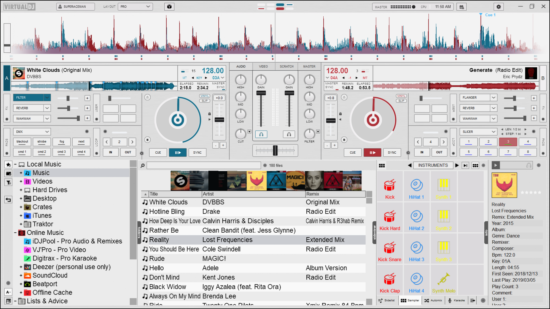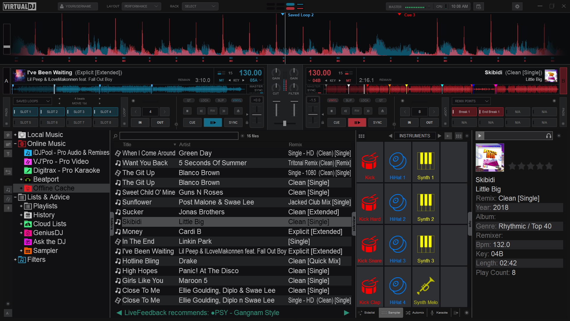 Rhythm Enhanced Waveform w/Grid Lines and Bar Counter Deck LayoutChanges the size and position of the decks. 3 Options are available; Full, Compact (default) and Small. When the Full option is selected, other characteristics of the layout can be changed such as the jogwheels (See Pro Layout).