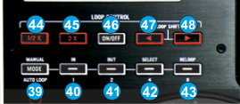 - MODE. Use this button to select how the IN, OUT, SELECT and RELOOP buttons will behave.