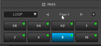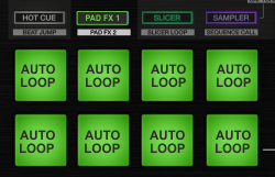 Press one of the pads to trigger an Auto Loop of a different size in beats, depending on the selected page. There are 6 different pages available with sizes starting from 1/32 up to 128 beats.