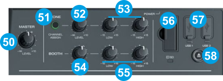 BOOTH LEVEL : Adjust the volume of the Booth output (connection at the rear)