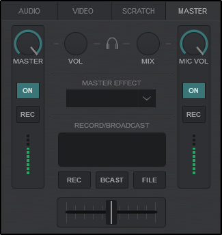 The Microphone will have to be enabled in the Master Panel in order for it to be audible and/or recorded in the software (see Master Panel for more information). The audio interface (SoundCard) used may need to have the Microphone enabled in the driver utility panel (if available) or on the hardware itself to allow the microphone signal to input into the software.