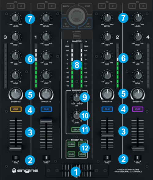 SWEEP FX. Applies the selected Sweep/Color FX on each channel.