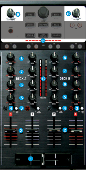 * The mixer channel order can be changed from VirtualDJ Settings to a different one.