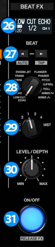 5. BEAT FX LEVEL: Use this knob to adjust the 1st Parameter of the selected Effect.