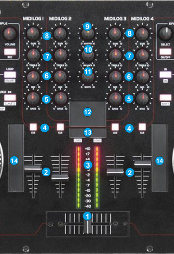 - VOLUME. Adjust the Volume of each Midilog/Deck.