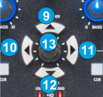 Hold SHIFT down and press the UP Navigation button (9) to set the Navigation system to Browser mode. This mode is by default pre-selected when VirtualDJ is launched. - UP. Use this button to set focus to the Folders List of the Browser. If focus is on the Folders list, use this button to expand/collapse sub-folders.