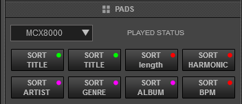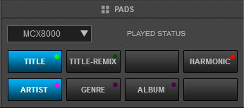 - The MCX8000 can be only selected from the Pads Page drop-down list of the GUI, but you may also assign any button as pad_page 'MCX8000' to perform this action