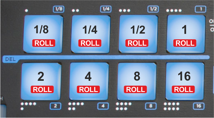 Hold SHIFT down and then use the same Pads to trigger a momentary Loop Roll (while pressed) of the same size in beats as per the image. When the PAD is released the track will resume from the position it would have been if the Loop was never triggered.