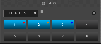 1-16 PADS 1-16Assigns current track's position to Hotcue 1 to 16 (if empty) or jumps to the stored position if Hotcue 1 to 16 is assigned.Delete the assigned Hotcue 1 to 16