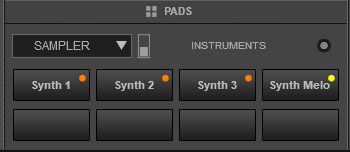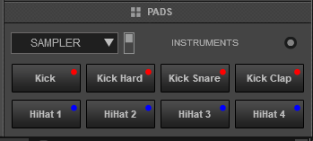 Press the SAMPLER mode button [P4] to set the 16 Pads to Sampler mode. The Sampler Pads page will be also displayed on the GUI of VirtualDJ, reflecting the operation of the 16 Pads. Hold SHIFT and then press the P1 button to toggle the view between Pads 1 to 8 and Pads 9 to 16