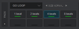 In this mode, the 4 numbered Pads trigger an auto-Loop of a different size in beats, depending on the selected Loop Bank.
