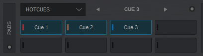 In this mode the 4 numbered Pads assign a Hotcue (1-4) or trigger the Hotcue (if assigned). Hotcues further to 4 can be triggered from the GUI.