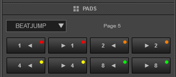 While the Slicer mode is selected, press the same SLICER mode button again to set the PADs to Beat Jump mode (led will blink). The BeatJump page will be then selected and displayed on the Pads section of the VirtualDJ skin