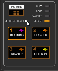 - PAD 1 : Trigger the Beat Grid Effect. Use the arrow buttons on the skin to select a different Beat Grid pattern