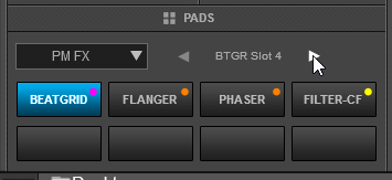 Use the PAD MODES button until all Leds are lit to set the Pads to Effects mode. The special PM FX page will be then selected and displayed in both the tailored and the default skins of VirtualDJ