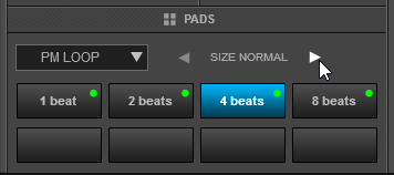 Use the PAD MODES button until the second from top Led (LOOP) is lit to set the Pads to Loop mode. The special PM Loop page will be then selected and displayed in both the tailored and the default skins of VirtualDJ