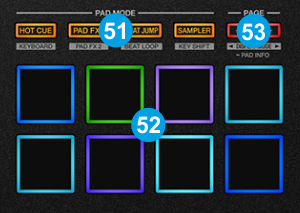 - PAD MODE. Press any of the 4 available Pad mode buttons to set the Pads to Hotcues, Pads FX, Beatjump and Sampler mode.