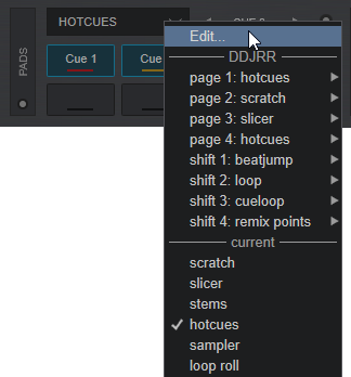 Right clicking (shift) a pad will display the available Hot Cues that have been set. The preferred Hot Cue can then be selected to be used on the main Pads.