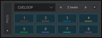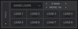The Saved Loop page will display and trigger any saved loops that you have created in the POI Editor. Clicking on an empty slot will save the loop to the pad and engage it, while holding a Pad will delete the saved loop. Once a loop is saved to a slot, left clicking will activate the Saved Loop but will not jump to its position if it's later to the track's current position (load-prepare).
