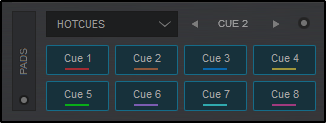 Hot Cues are flagged locations in a track that can be jumped to instantly on the fly. This gives the DJ the ability to jump to any position in the song without disrupting the audio. VirtualDJ displays 8 available Hot Cue slots in the Pads display by default, but also provides the ability to create and store an unlimited number of Hot Cues per track.