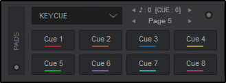 The Keycue page provides the ability to instantly trigger the selected Hot Cue and change it's key in a single step. Each Pad will trigger the same Hot Cue but in a different key and the track will continue to play in that key until the key is reset or any Hot Cue is triggered at the zero value. Each Keycue pad displays it's value in semitones.