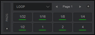 The Loop Roll page provides the ability to instantly create a loop roll by a specified number of beats while the pad is held. Releasing the pad will allow the track to continue from the place that it would have been in as if no loop was triggered.