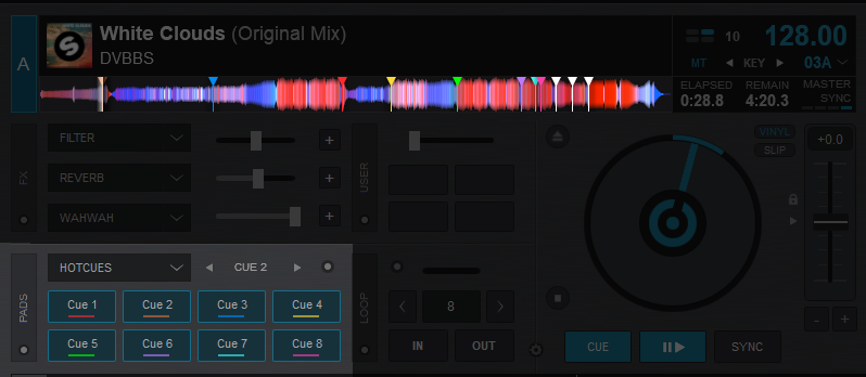 *Note: Even though 8 Hot Cue points are offered in the Default GUI (which should cover the needs in most cases), VirtualDJ supports unlimited Hot Cue points which can be controlled using a custom skin, custom buttons, or keyboard/midi controller shortcuts.