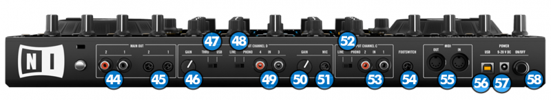 13. USB CONNECTOR: Use a standard USB cable to connect Kontrol S4 MK2 with your computer.