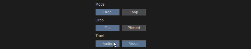 ON/OFF Press a Sampler Pad to start playing a sample from the beginning. Press the same Sample pad again to stop the sample. HOLD The Sample will play from the beginning as long as the Sampler Pad is pressed. STUTTER The Sample will play from the beginning, each time you trigger a Sampler Pad. Right-click to stop the Sample UNMUTE The Sample will be muted if the Sampler Pad is not pressed. Right-click to stop the Sample. - MODE. Choose if the Sample will be a Drop (the sample will play once when triggered) or a Loop (the sample will play in a Loop until stopped).
