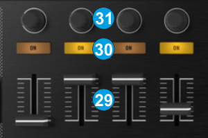 When in Browser mode, use these buttons to sort the Songs list by Artist, Title, BPM or Key. - SAMPLER FX KNOB : Use these encoders to adjust the first 4 Parameters of the selected Effect for Sampler (if available).
