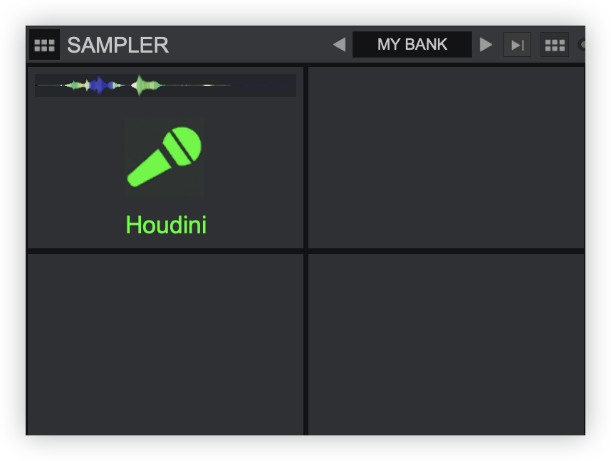 • PER-SONG - Associates a set of samples with a specific song. Any samples dropped or recorded in the PER-SONG bank will only show on the deck where this song is loaded, and will automatically show again next time the song is loaded.
