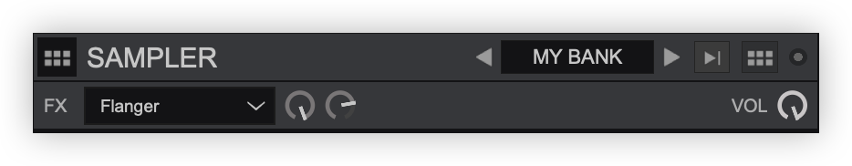 Provides an FX Tool Bar at the top of the Sampler to apply and control effects as well as the Sampler's volume.