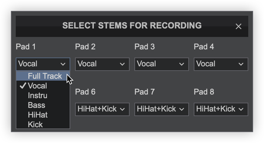 When a bank is set as StemSwap bank, it will record specific stems instead of the full track.