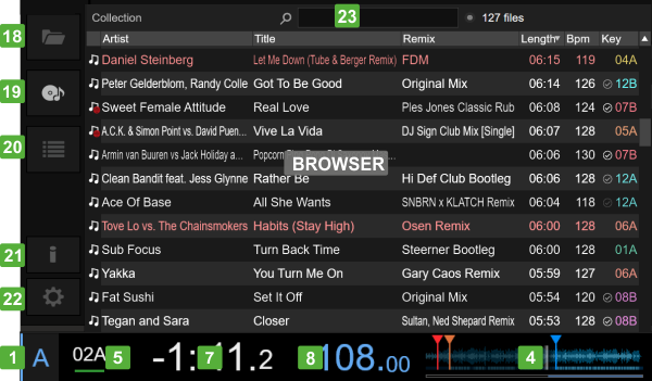 - Basic Deck View , with Basic Deck information (without Pads and Sampler), and a small Browser view
