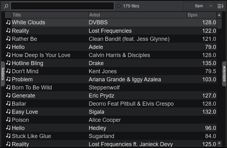 The Browser area offers a Search input box on the top. This is used to search and find files within your media library without browsing within the folders. VirtualDJ will automatically add files to the Search Database whenever a folder is focused on (opened in the Folder List) for the first time and keep the results in the database.
