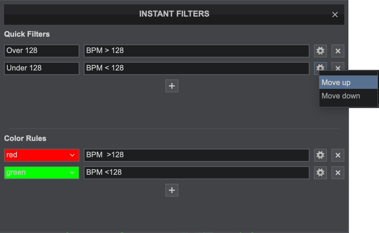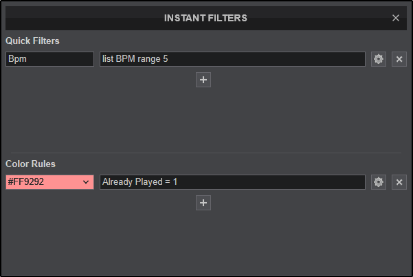 Instant Filters provide an easy to use filter system for quick access to tracks on the fly. Instant Filters are divided into 2 separate categories: