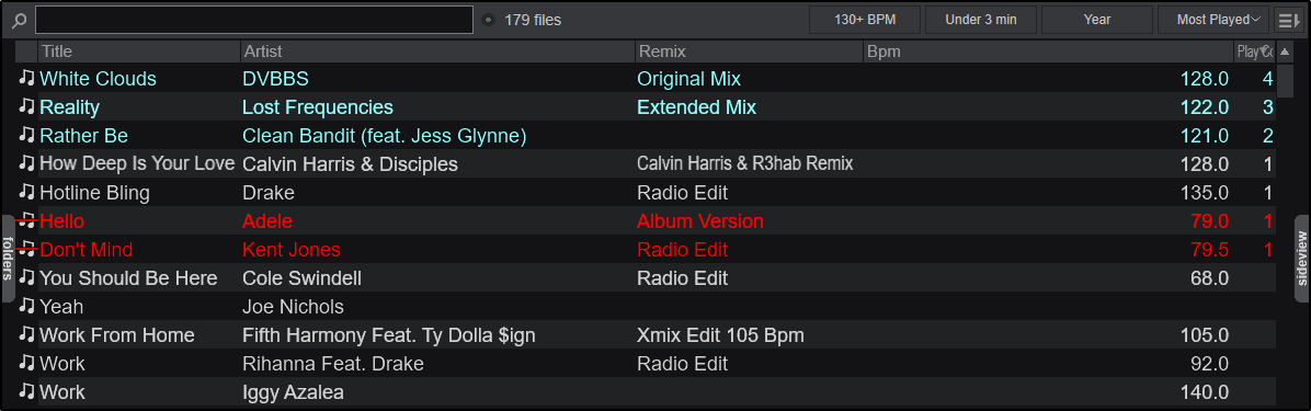 COLOR RULES - Allows the automatic assignment of color based on the criteria set, such as highlighting already played tracks or adding color to your most played tracks.