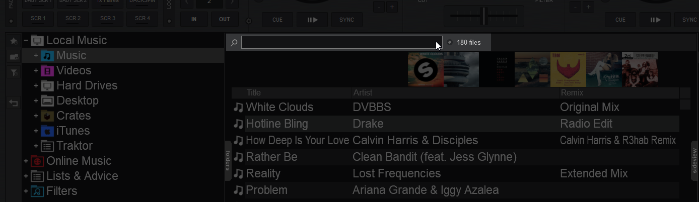 Search results are constantly updated as you type characters in the Search field. VirtualDJ will provide the tracks of the selected (focused) folder on the top followed by the tracks from other folders and those will be separated by an empty line.