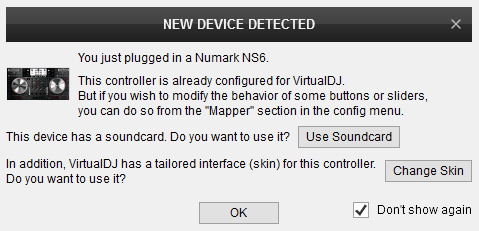 Click on the Use Soundcard button in order VirtualDJ to apply the pre-defined audio configuration (speakers need to be connected to the rear panel of the unit in this case)