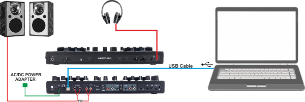 - Connect your Headphones to the front socket of the unit and your amplifier/amplified speakers to the Master Out socket at the rear side using an RCA cable.