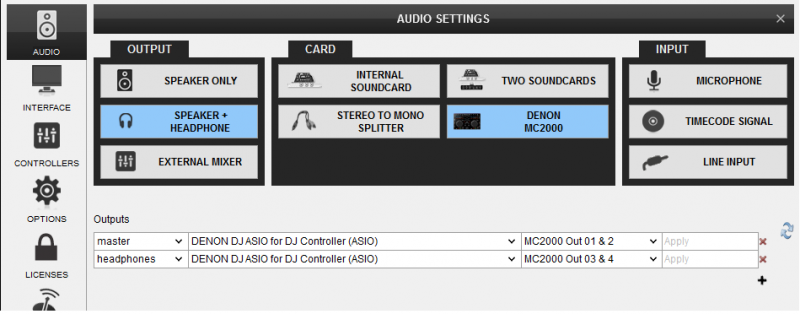 Click on the Use Soundcard button in order VirtualDJ to apply the pre-defined audio configuration using the built-in sound-card of the unit. Speakers need to be connected to the rear panel of the unit in this case.