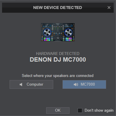 Click on the MC 7000 button in order VirtualDJ to apply the pre-defined audio configuration (speakers need to be connected to the rear side of the unit in this case)
