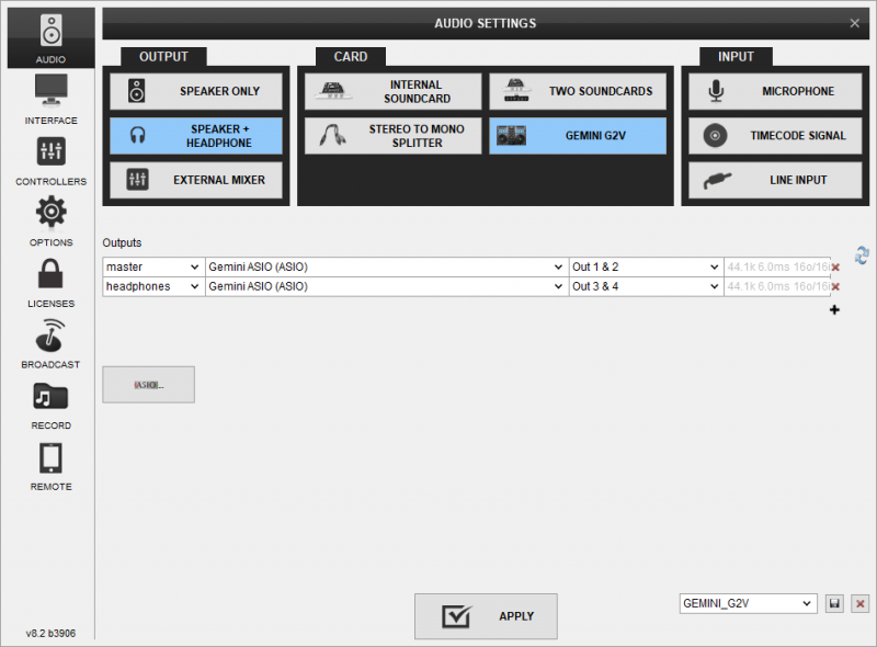 Click on the "Use Soundcard" button in order VirtualDJ to apply the pre-defined audio configuration (speakers need to be connected to the rear side of the unit in this case).