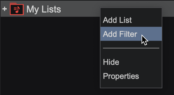 Right-click on the My Lists folder in the Folder List and select Add Filter. A pop-up window will be displayed to type a name for the new Filter Folder. Name the folder and click OK.