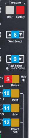 When VirtualDJ starts with the Launch Control XL connected, the device starts on Factory Template 1 (default Template). You can select this Template anytime, by holding down the