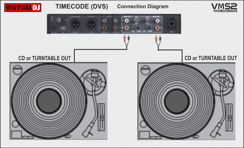 The VMS2 is capable to offer a Timecode setup (DVS) with its built-in 4out/4in audio interface. Timecode operation requires a Pro Infinity or a Pro subscription license.